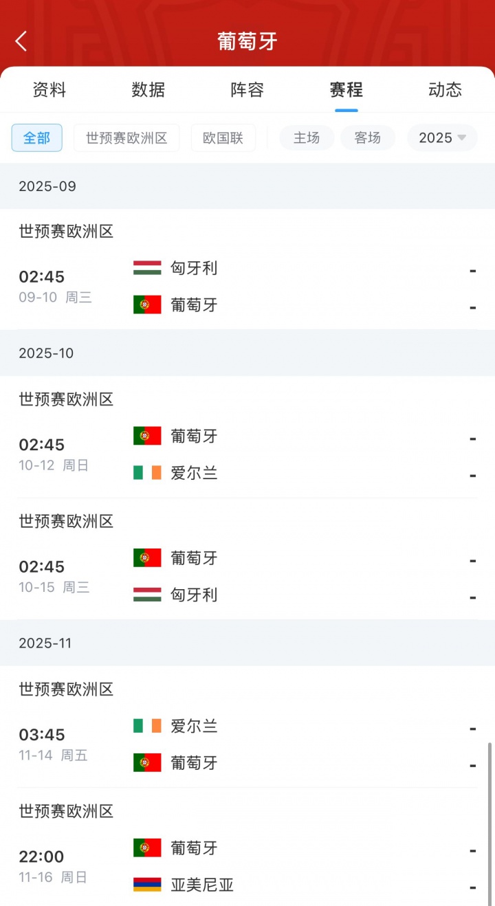 24 9月7日实时网络在世界杯F欧洲F组第5轮中的第5轮新闻中,葡萄牙以5-0击败亚美尼亚,罗纳尔多得分两次,世界杯预选赛得分38球超越了梅西,距离世界杯历史记录赛的顶级历史得分手榜单只有一个进球!